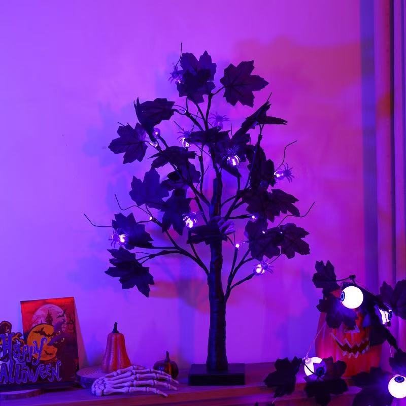 3. Spider Tree: Black branches + Black maple leaves + 12 LED Spider lights