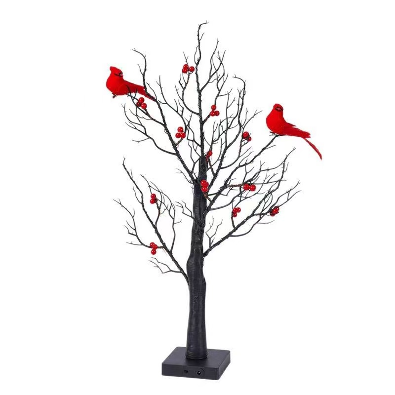 • Product Name: LED Lighted Cardinal Tree / Red Bird Desktop Birch Tree Lamp