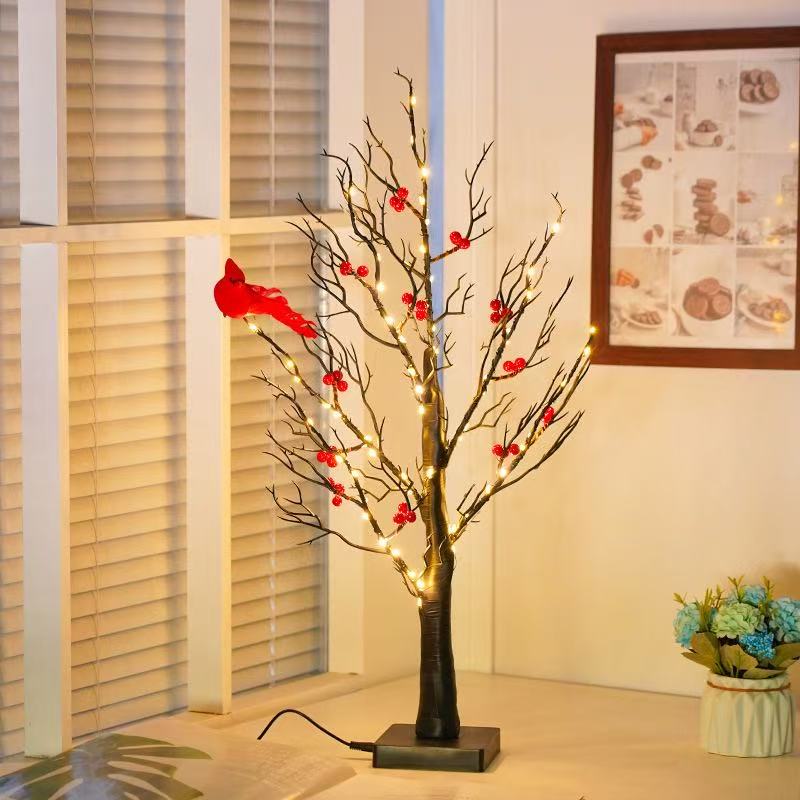 DUCKKOKO Cross-border popular glowing red bird winding tree lamp decoration living room bedroom atmosphere arrangement modeling lamp festival LED lamp